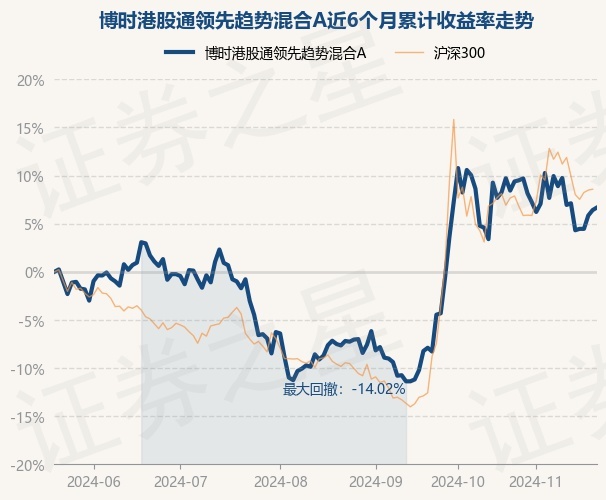 本站音讯,11月21日,博时港股通杰出趋势搀杂A最新单元净值为0.4377元,累计净值为0.4377元,较前一交游日上升0.25%。历史数据知道该基金近1个月下降0.93%,近3个月上升15.52%,近6个月上升6.68%,近1年下降3.14%。该基金近6个月的累计收益率走势如下图: